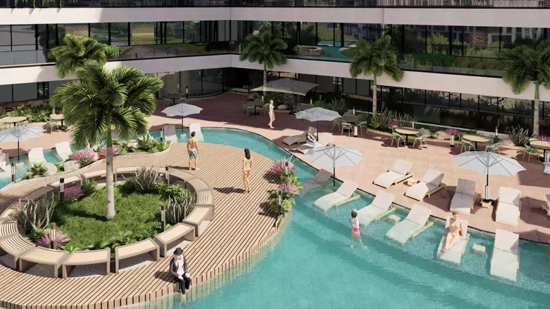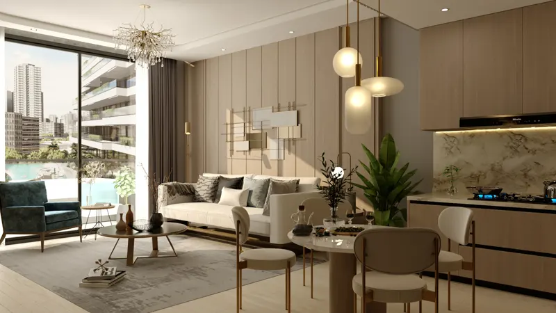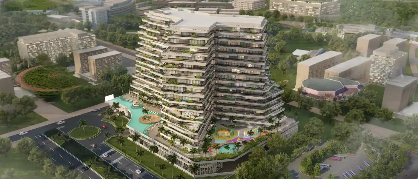 The exclusive designed façade promises a lifestyle beyond compare, exemplifying the epitome of elegance and modern living. The meticulously designed apartments boast contemporary finishes and expansive floor to ceiling windows that usher in abundant natural light, creating a bright and inviting ambiance. Residents have the unique privilege of enjoying private jacuzzi pools, adding an extra touch of opulence to their living spaces.